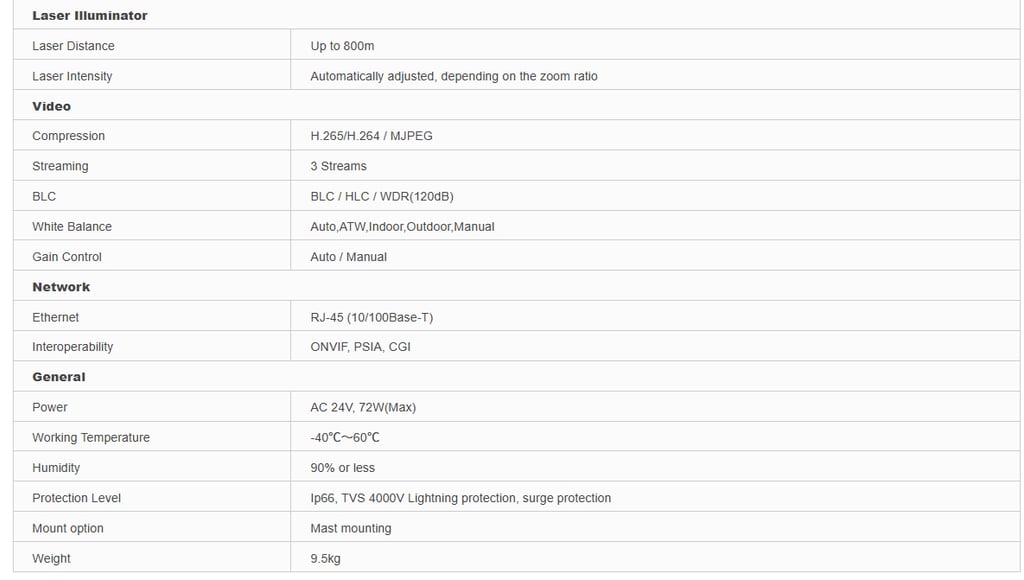 Starlight Laser PTZ Network Camera