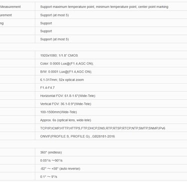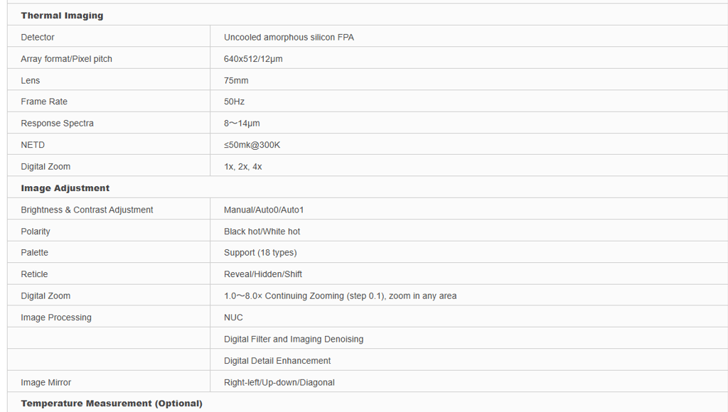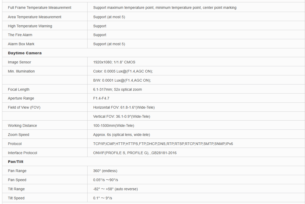 It have long range detection and temperature measurement capabilities,allowing them to be used in conjunction with visible light cameras to achieve all-weather,comprehensive surveillance.